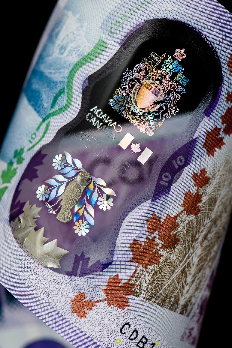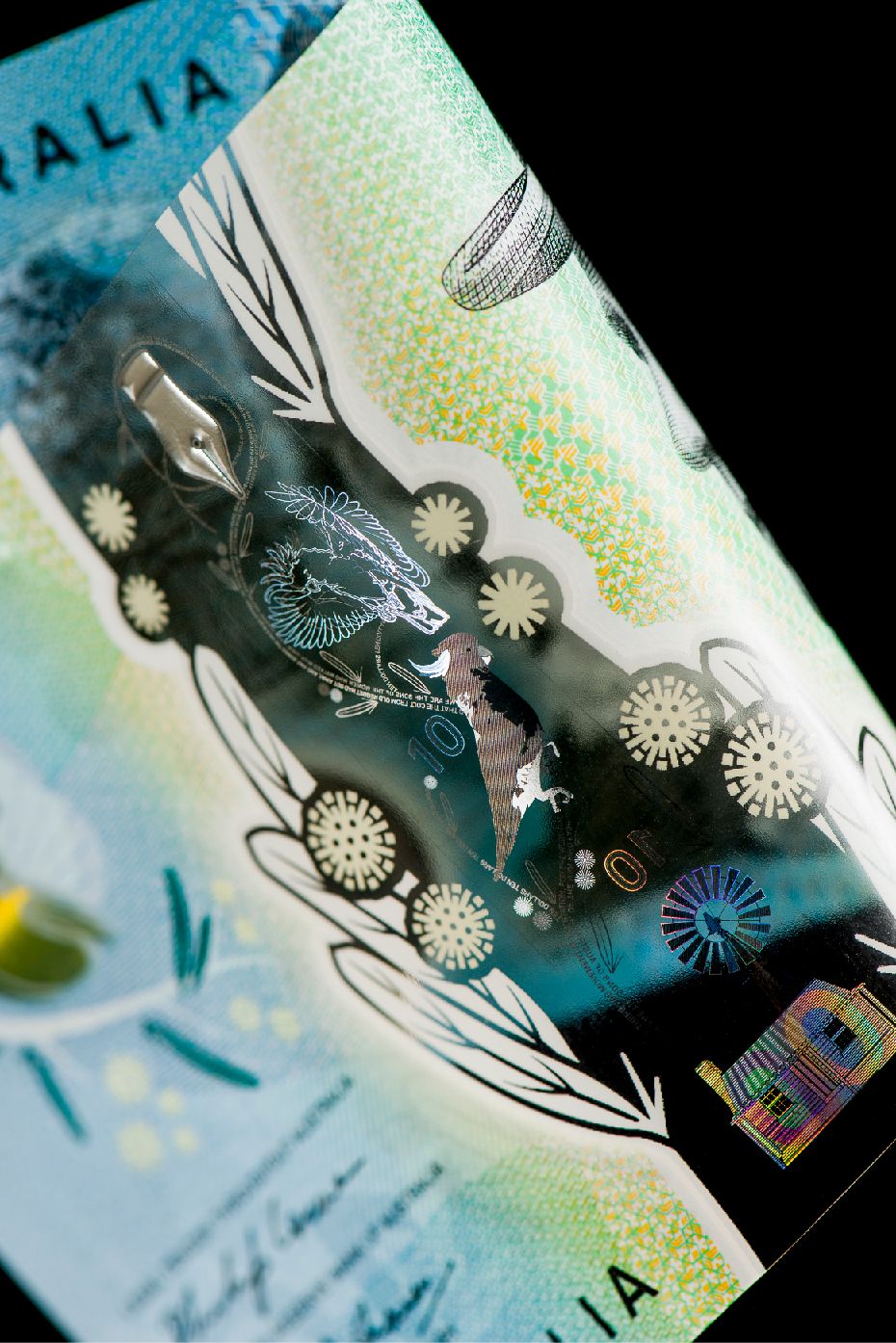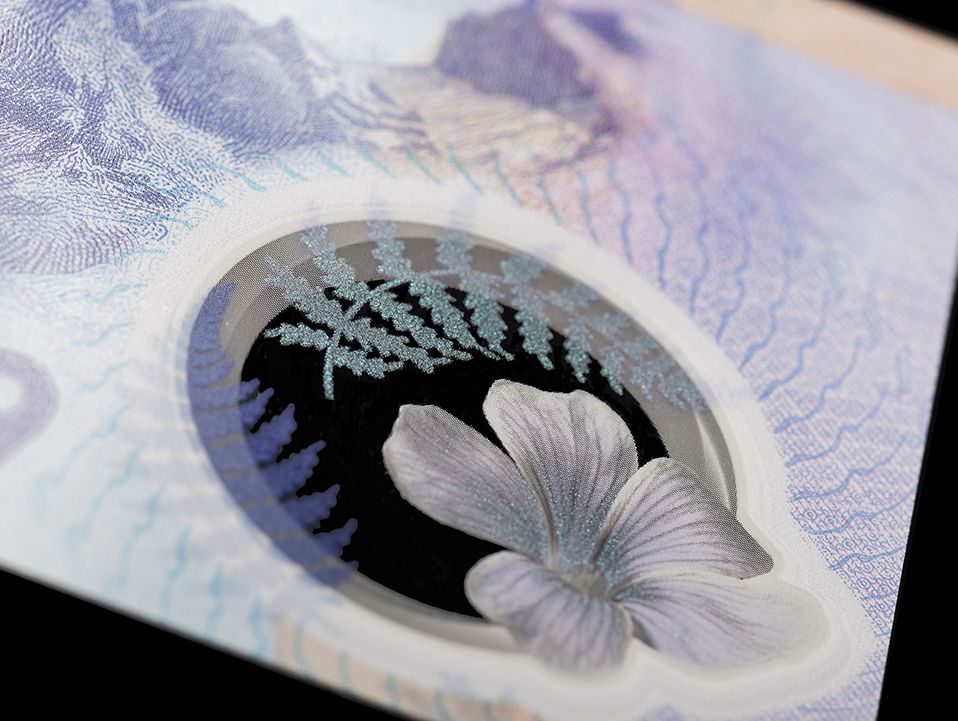 They often create vibrant images across the banknote, above or below opacified layers, including within a window. Substrate elements enable designers to incorporate complexity and enhance aesthetics with layered tonal images, dynamic text and colour-shifting vignettes. These instantly recognisable features support strong public recognition.