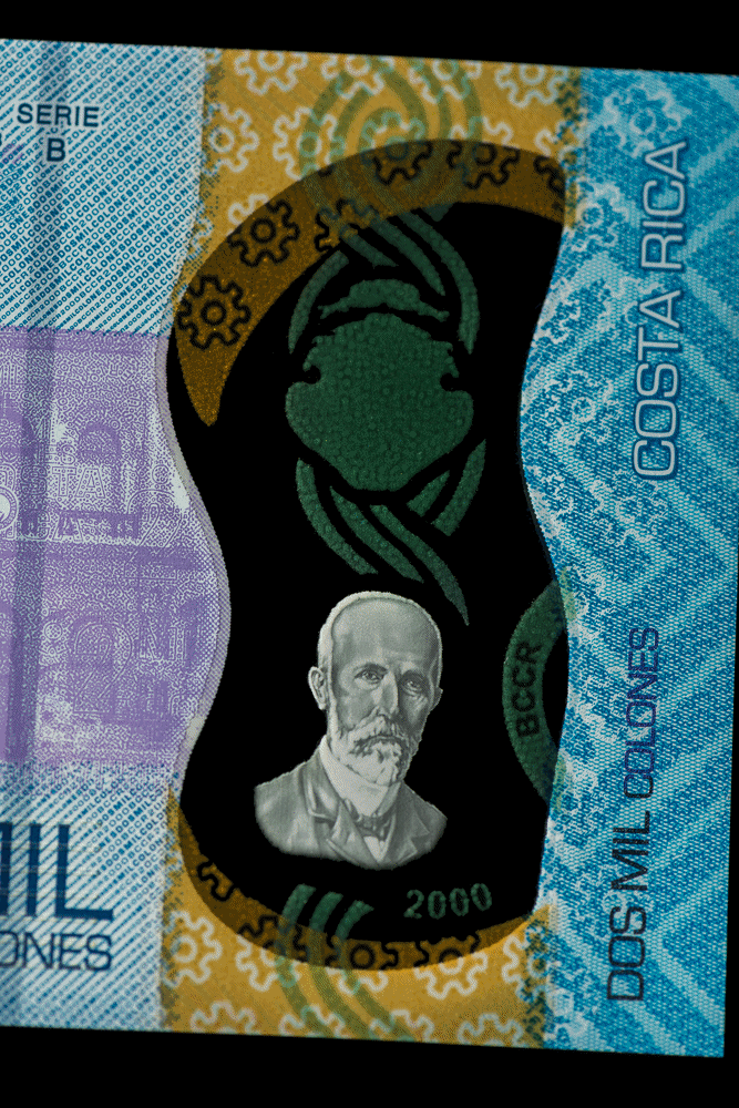 Security features truly shine on GUARDIAN™ banknotes, thanks to polymer’s smooth and transparent qualities. The smooth surface of polymer ensures features appear bright and clear, while transparent film provides for the possibility of features that can be seen from both sides of the note.