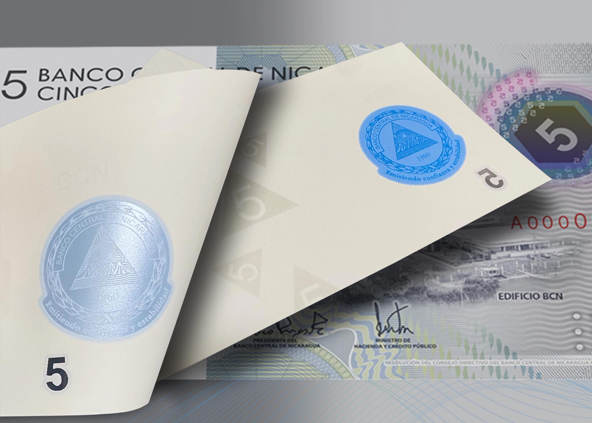 Nearly 60 years after it was founded, Banco Central de Nicaragua is marking the occasion by issuing a commemorative 5 córdoba note. Made from GUARDIAN™ polymer, the new note includes a range of design and security features that are achievable only with polymer banknotes.